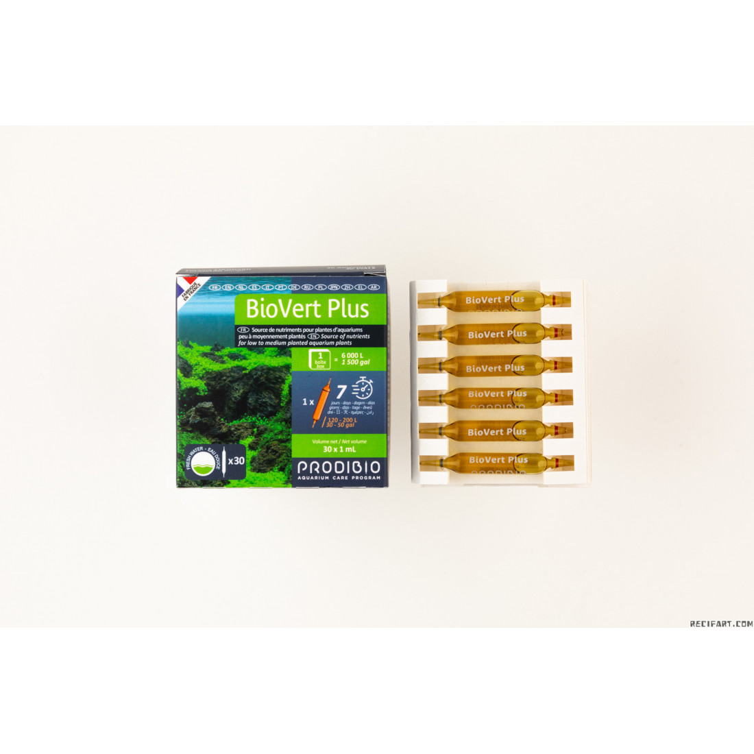 Biovert Plus from Prodibio is a growth supplement specially formulated for aquatic plants. It is particularly suitable for sparsely planted aquariums but with a moderate to high fish population.