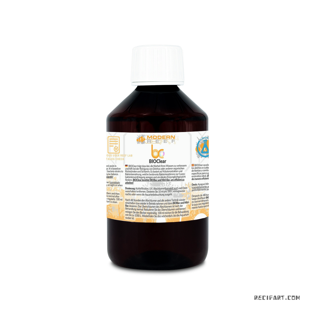Le BIOClear 250 ml de Modern Reef est une solution avancée pour améliorer la transparence de l’eau et aider à éliminer les débris organiques ou les boues dans les aquariums marins. Grâce à son mélange exclusif d'extraits d'algues marines et de carburant bactérien , il favorise l’équilibre enzymatique et stimule la prolifération des bonnes bactéries . Son action indirecte permet aussi de réduire la croissance des cyanobactéries .