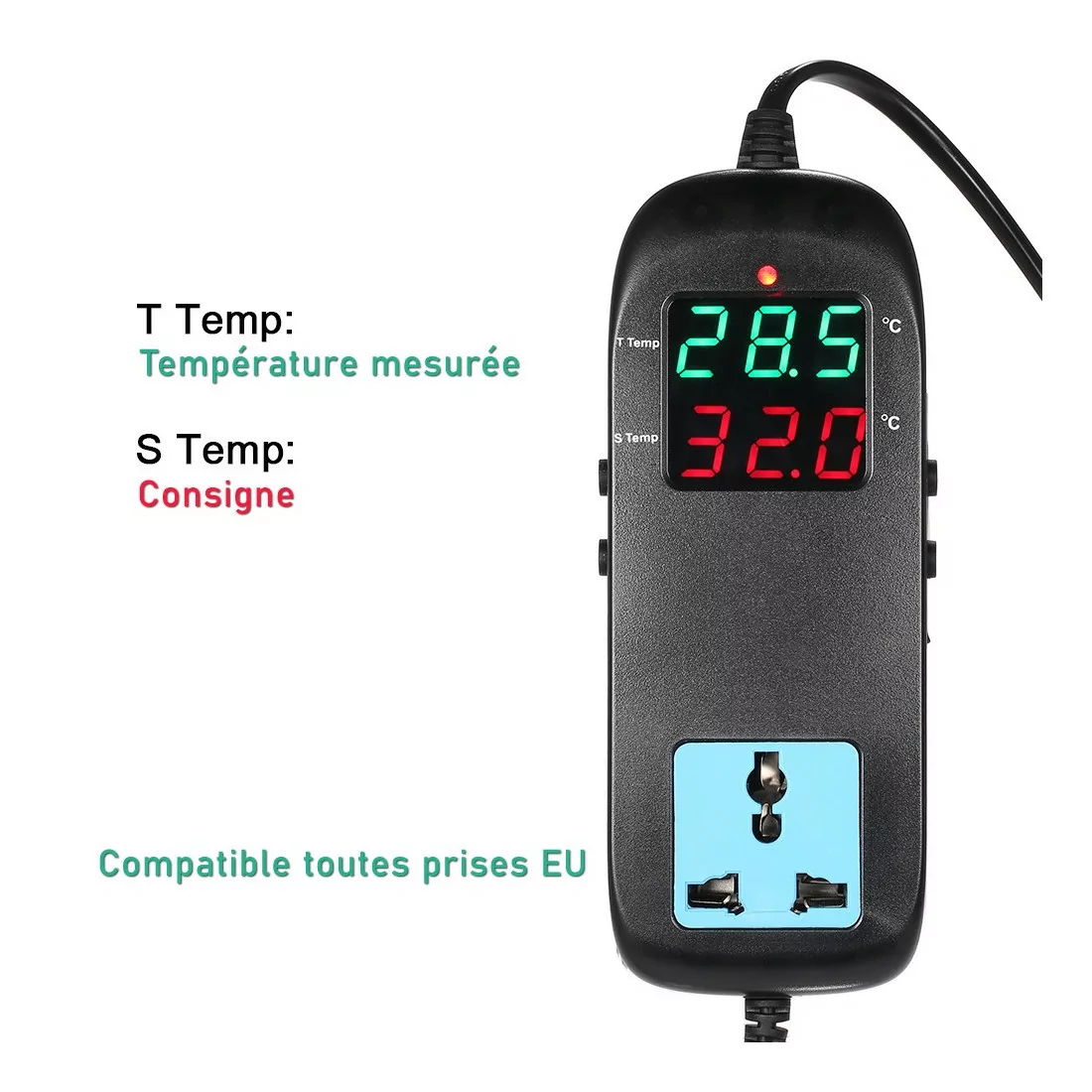Manter uma temperatura constante é vital para a sobrevivência de peixes e corais. Isto Controlador de temperatura eletrônica é a ferramenta ideal para automatizar a gestão térmica da sua bandeja. Graças à sua tela larga Liderado, você assiste de relance a temperatura atual e o ponto de ajuste definido.